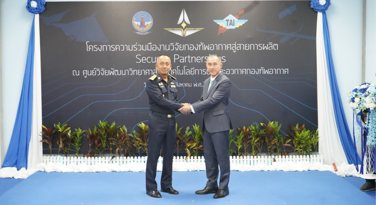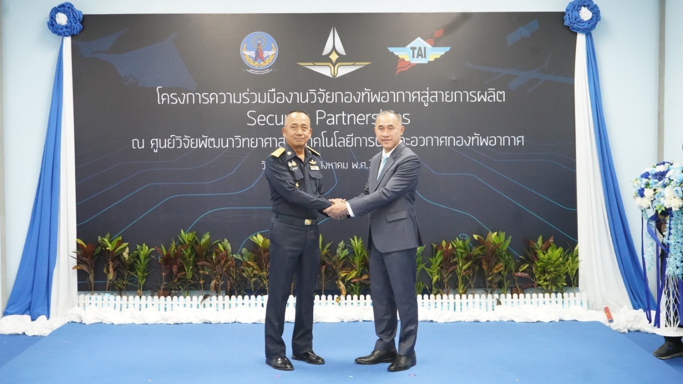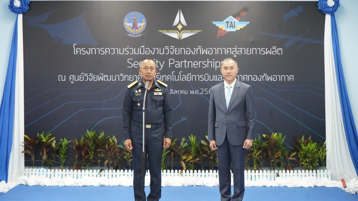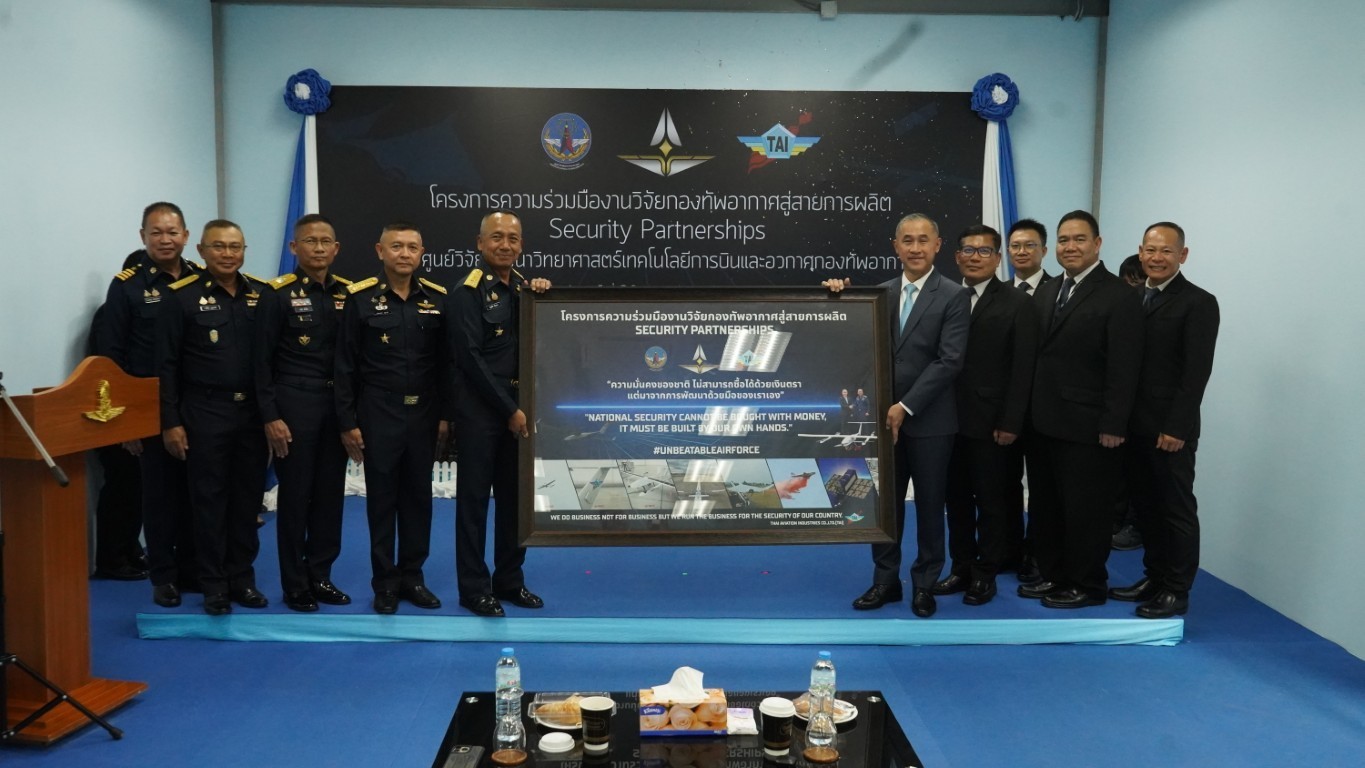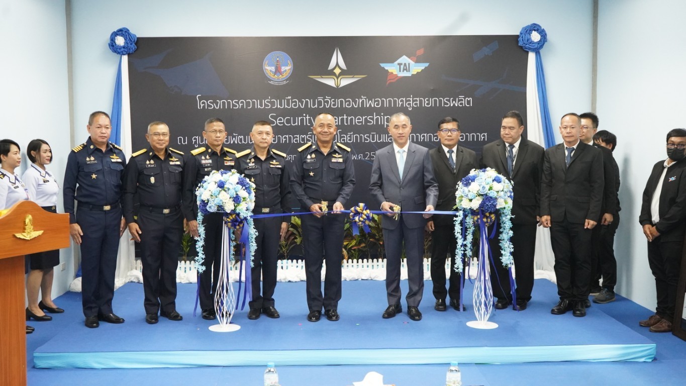 วันที่ 29 สิงหาคม 2568 — บริษัท อุตสาหกรรมการบิน จำกัด (TAI) จัดพิธีเปิดโครงการ “ความร่วมมืองานวิจัยกองทัพอากาศสู่สายการผลิต Security Partnerships” ณ กองสนับสนุนอากาศยาน ศูนย์วิจัยวิทยาศาสตร์เทคโนโลยีการบินและอวกาศกองทัพอากาศ โดยได้รับเกียรติจาก พลอากาศเอก พิบูลย์ วรวรรณปรีชา กรรมการผู้จัดการ บริษัท อุตสาหกรรมการบิน จำกัด เป็นประธานในพิธี ร่วมกับ พลอากาศโท บุญเลิศ อันดารา ผู้อำนวยการศูนย์วิจัยวิทยาศาสตร์เทคโนโลยีการบินและอวกาศกองทัพอากาศ โครงการดังกล่าวเกิดจากการบูรณาการความร่วมมือระหว่างภาครัฐและเอกชน โดย บริษัท อุตสาหกรรมการบิน จำกัด ได้ดำเนินการปรับปรุงห้องประกอบภายในกองสนับสนุนอากาศยาน เพื่อใช้เป็นพื้นที่ในการประกอบชิ้นส่วนอากาศยานไร้คนขับ (UAV) ซึ่งนับเป็นอีกหนึ่งก้าวสำคัญในการพัฒนาศักยภาพของกองทัพอากาศ และเป็นเวทีในการแลกเปลี่ยนองค์ความรู้ด้านการผลิต UAV อย่างเป็นรูปธรรม ภายใต้นโยบายของ พลอากาศเอก พันธ์ภักดี พัฒนกุล ผู้บัญชาการทหารอากาศ “ความมั่นคงของชาติ ไม่สามารถซื้อได้ด้วยเงินตรา แต่มาจากการพัฒนาด้วยมือของเราเอง” “ความมั่นคงของชาติ ไม่สามารถซื้อได้ด้วยเงินตรา แต่มาจากการพัฒนาด้วยมือของเราเอง” "National security cannot be bought with money - it must be built by our own hands.”และในโอกาสนี้ พลอากาศเอก พิบูลย์ วรวรรณปรีชา กล่าวถึงเจตนารมณ์ของโครงการว่าของบริษัทว่า “We do business not for business but we run the business for the security of our Country.” ภายในงานยังจัดให้มีการนิทรรศการนำเสนอผลงานวิจัยเด่นของศูนย์วิจัยวิทยาศาสตร์เทคโนโลยีการบินและอวกาศกองทัพอากาศ ซึ่งเป็นงานวิจัยที่สามารถต่อยอดสู่การผลิตเชิงอุตสาหกรรมได้จริง ตอกย้ำบทบาทของกองทัพอากาศในการเป็นศูนย์กลางการพัฒนานวัตกรรมเพื่อความมั่นคงของชาติ พร้อมสร้างรากฐานให้แก่อุตสาหกรรมป้องกันประเทศในอนาคต