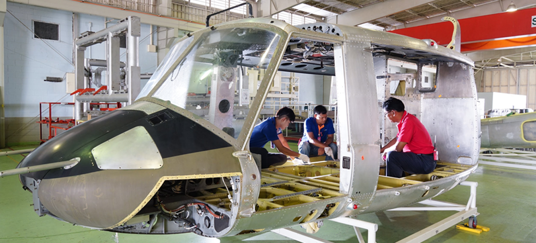 บริษัท อุตสาหกรรมการบิน จำกัด มีขีดความสามารถซ่อมบำรุงเฮลิคอปเตอร์แบบ Bell 212, Bell 412 HP/EP, UH-1H, S-92A, H-155 and UH-72A.  ตั้งแต่ระดับหน่วยจนถึงการซ่อมบำรุงระดับโรงงาน ผลงานเป็นที่ยอมรับของลูกค้า และเป็นความภาคภูมิใจของบริษัท ฯ ที่มีส่วนร่วมทำให้เฮลิคอปเตอร์ของหน่วยงานของภาครัฐหลายหน่วยงาน สามารถปฏิบัติหน้าที่ช่วยเหลือประชาชนได้เต็มประสิทธิภาพ