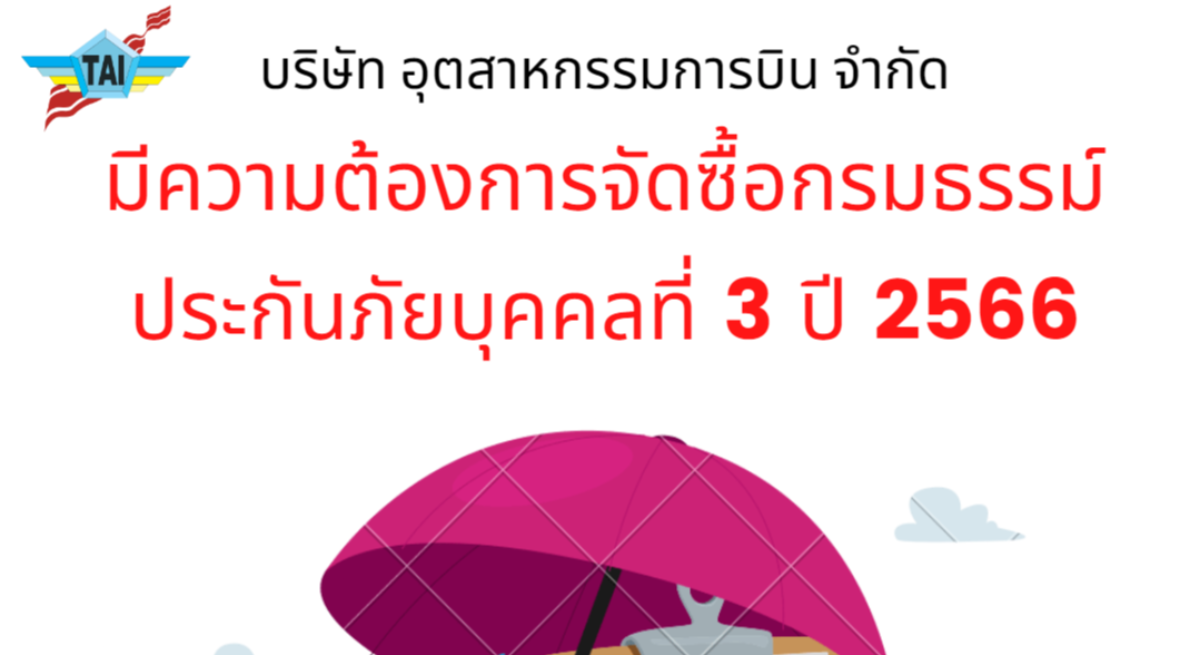 / ประกาศ บริษัท อุตสาหกรรมการบิน จำกัด มีความต้องการจัดซื้อกรมธรรม์ประกันภัยบุคคลที่ 3 ปี 2566