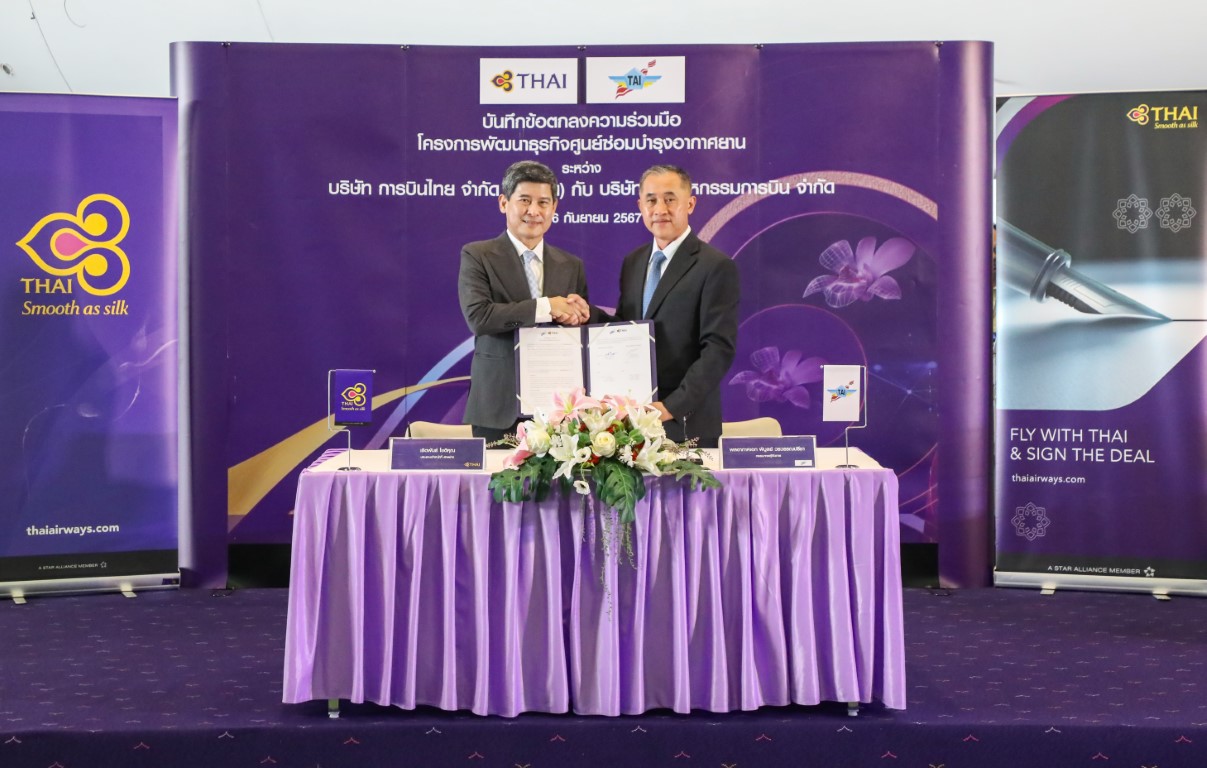 Thai Aviation Industries (TAI) signs a memorandum of understanding with aerospace firm Thai Airways International to explore opportunities in commercial aircraft MRO. The agreement covers areas such as aircraft, engine, as well as component maintenance, says the state-owned TAI. Other areas include training and technological development. The partnership aims to “support the growth and increase competitiveness” of Thailand’s aviation sector, as part of government efforts to promote the country as a regional aviation hub. TAI, which was set up in 2003, has MRO capabilities on a range of platforms, including the Airbus A320 and ATR 72. It is predominantly focused on military aircraft MRO, with capabilities on the Lockheed Martin C-130H, Bell 212 and 412, as well as the Sikorsky S-92 helicopter.