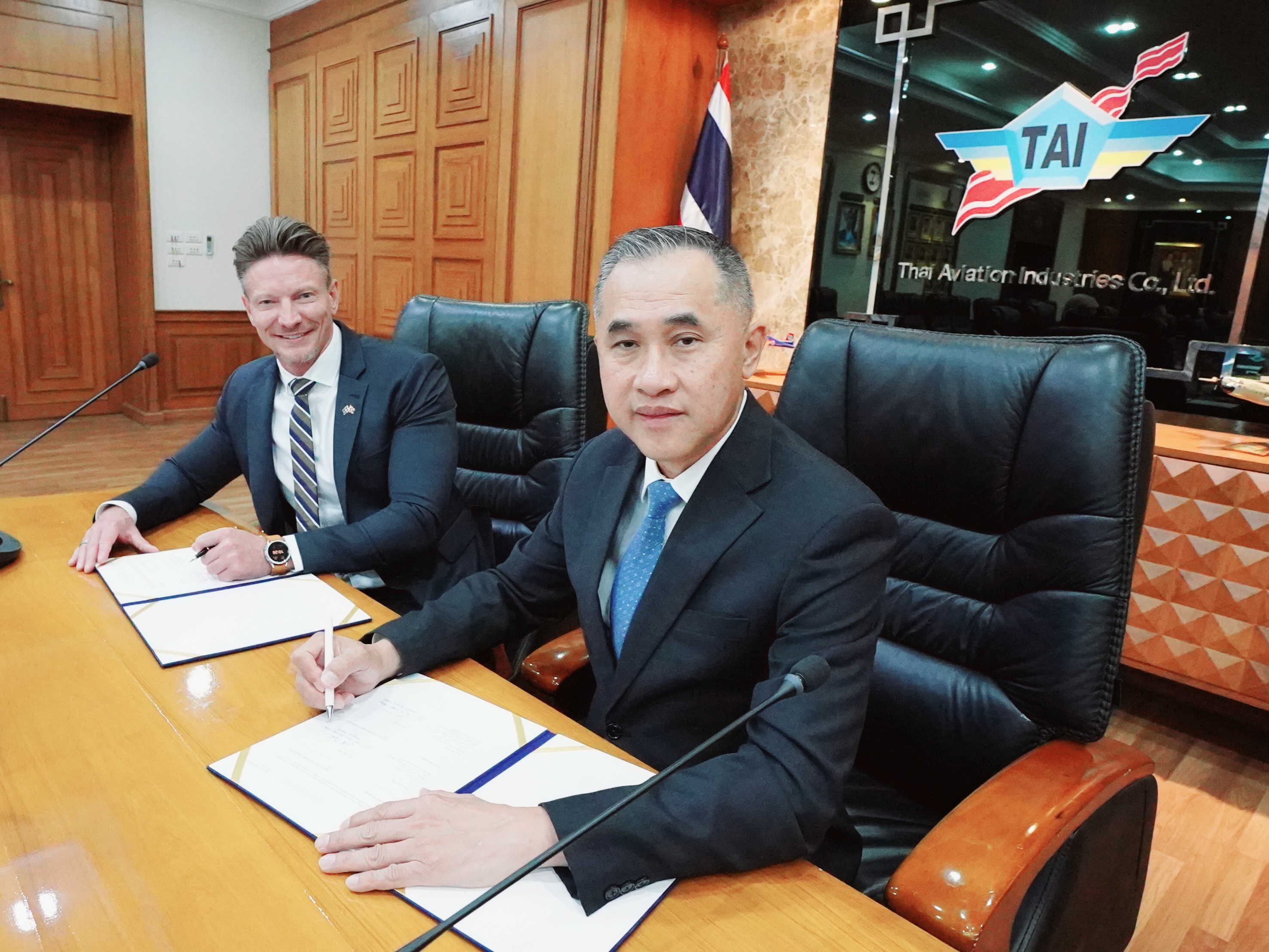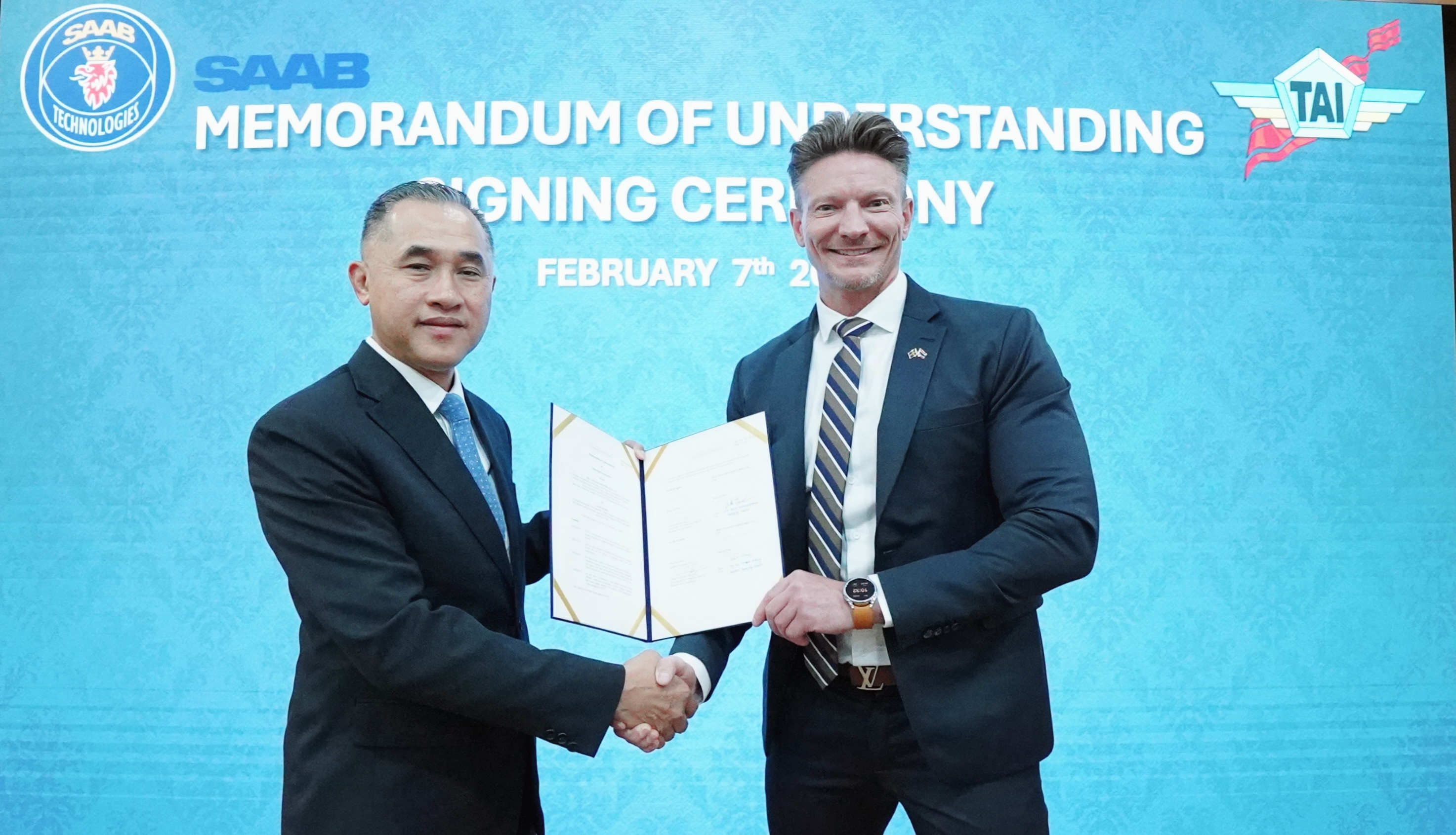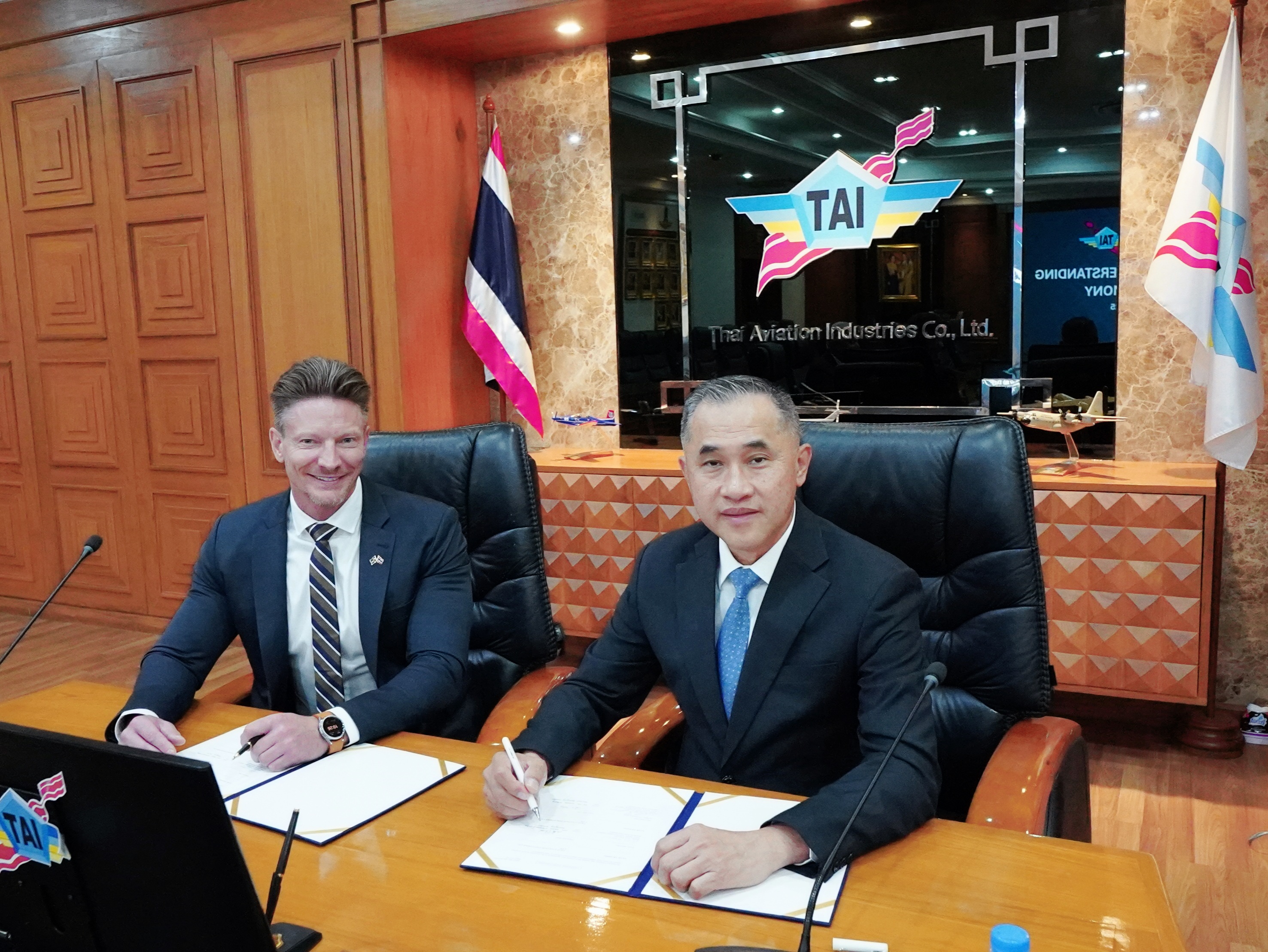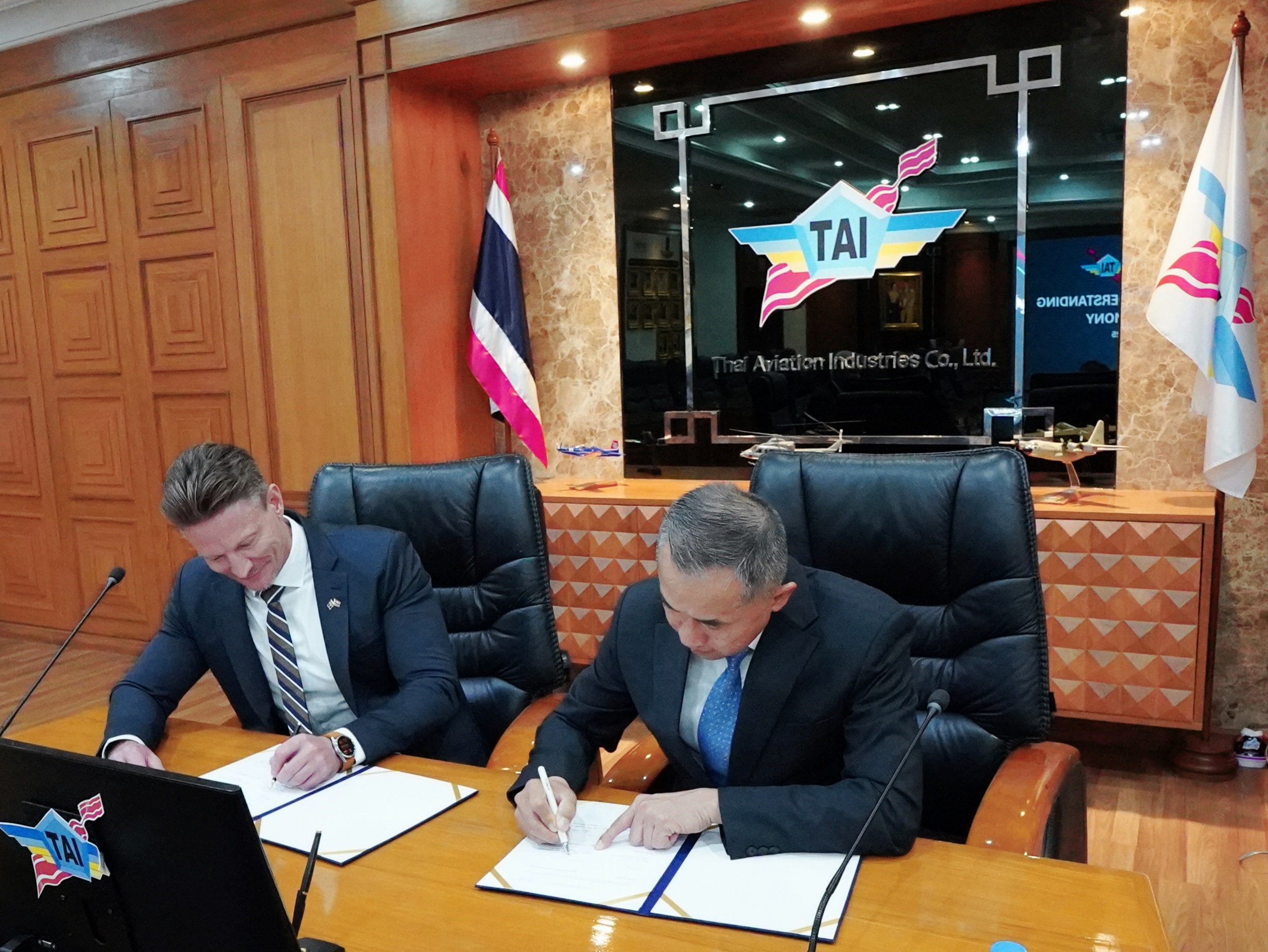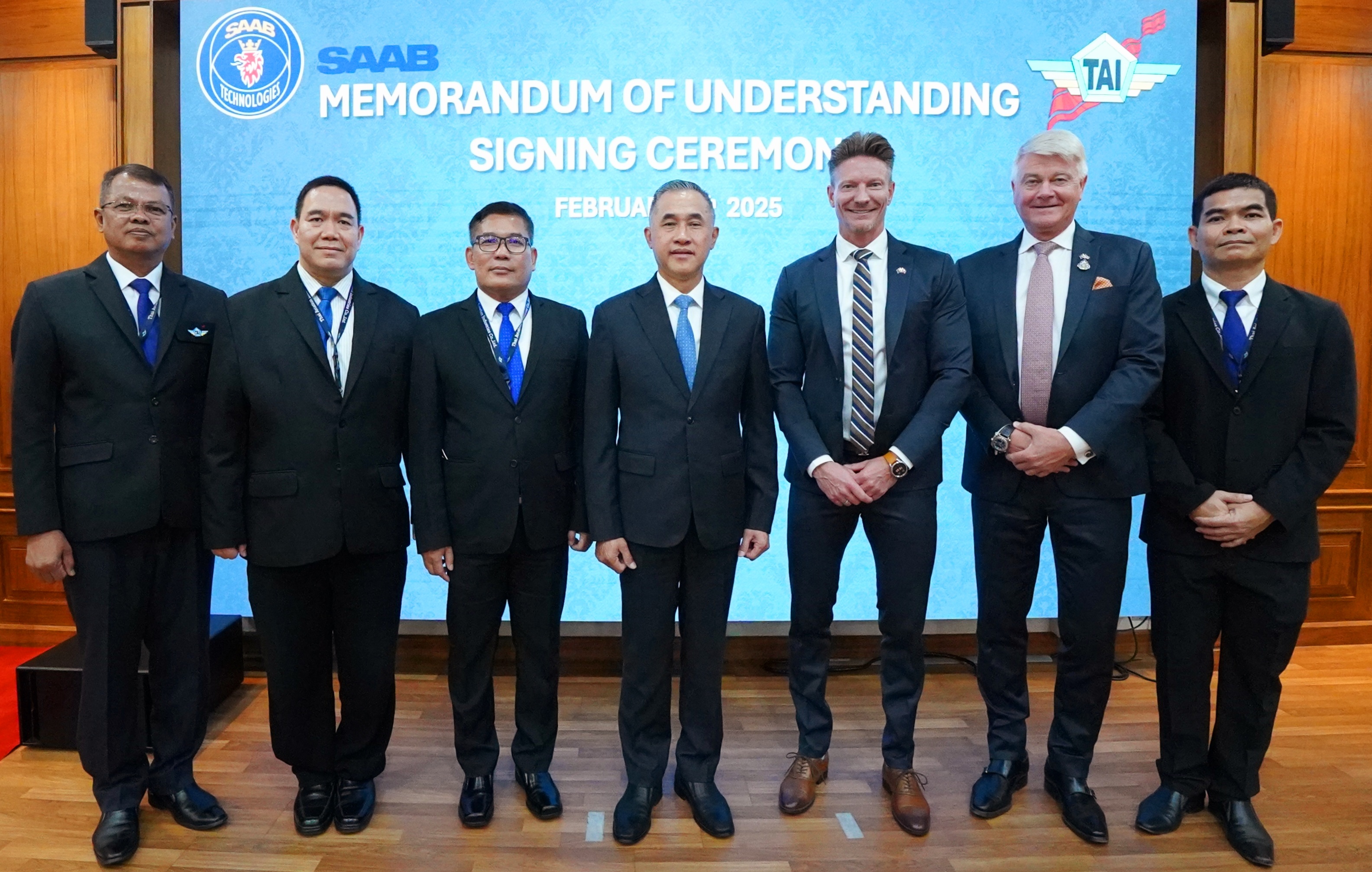 พล.อ.อ.พิบูลย์ วรวรรณปรีชา กรรมการผู้จัดการ บริษัทอุตสาหกรรมการบิน จำกัด ร่วมกับ Mr. Fredrik Lindblom Vice President, Head of Saab Thailand & Sales Director ATM Region Asia และ Mr. Robert Bjorklund Gripen Sales Executive ลงนามในบันทึกความเข้าใจ (MOU) ความร่วมมือ ด้านอุตสาหกรรม ระหว่าง บริษัท อุตสาหกรรมการบิน จำกัด และ บริษัท SAAB AB เมื่อวันที่ 7 ก.พ. 68 ณ บริษัทอุตสาหกรรมการบิน จำกัด การลงนามในบันทึกข้อตกลงในครั้งนี้ จะเป็นการขยายขอบเขตความร่วมมือและเพิ่มขีดความสามารถ ให้กับบริษัท TAI จากบริษัทผู้ผลิตในด้านต่างๆ ดังนี้ - การสนับสนุนการส่งกำลังและซ่อมบำรุงให้กับเครื่อง Saab 340 ของกองทัพอากาศ - การสนับสนุนการส่งกำลังและซ่อมบำรุงให้กับเครื่อง Gripen (E/F) ของกองทัพอากาศ - เพิ่มขีดความสามารถให้กับบริษัท TAI ในการซ่อมบำรุงชิ้นส่วนหลัก (Component) ของอากาศยานในประเทศ เพื่อสนับสนุนอากาศยานของกองทัพอากาศและกองทัพเรือ - เพิ่มขีดความสามารถในด้าน Technical Data Link และ Command and Control ให้กับบริษัท TAI