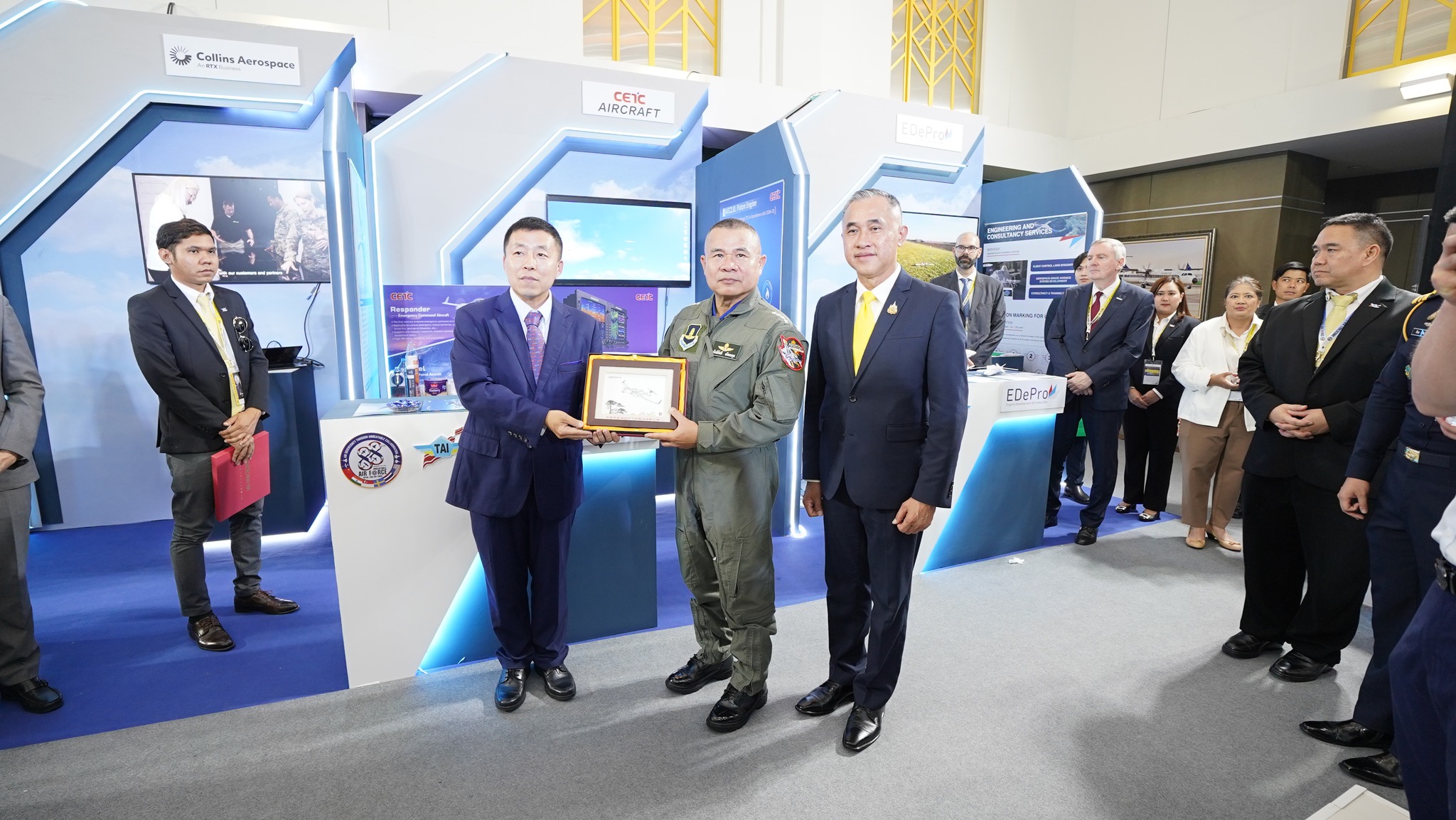 บริษัท อุตสาหกรรมการบิน เฝ้าทูลละอองธุลีพระบาทรับเสด็จ พระบาทสมเด็จพระเจ้าอยู่หัว และสมเด็จพระนางเจ้า ฯ พระบรมราชินี เสด็จพระราชดำเนินไปทอดพระเนตรการแสดงคอนเสิร์ตทัพฟ้าคู่ไทยเพื่อ ชัยพัฒนา ครั้งที่ 16