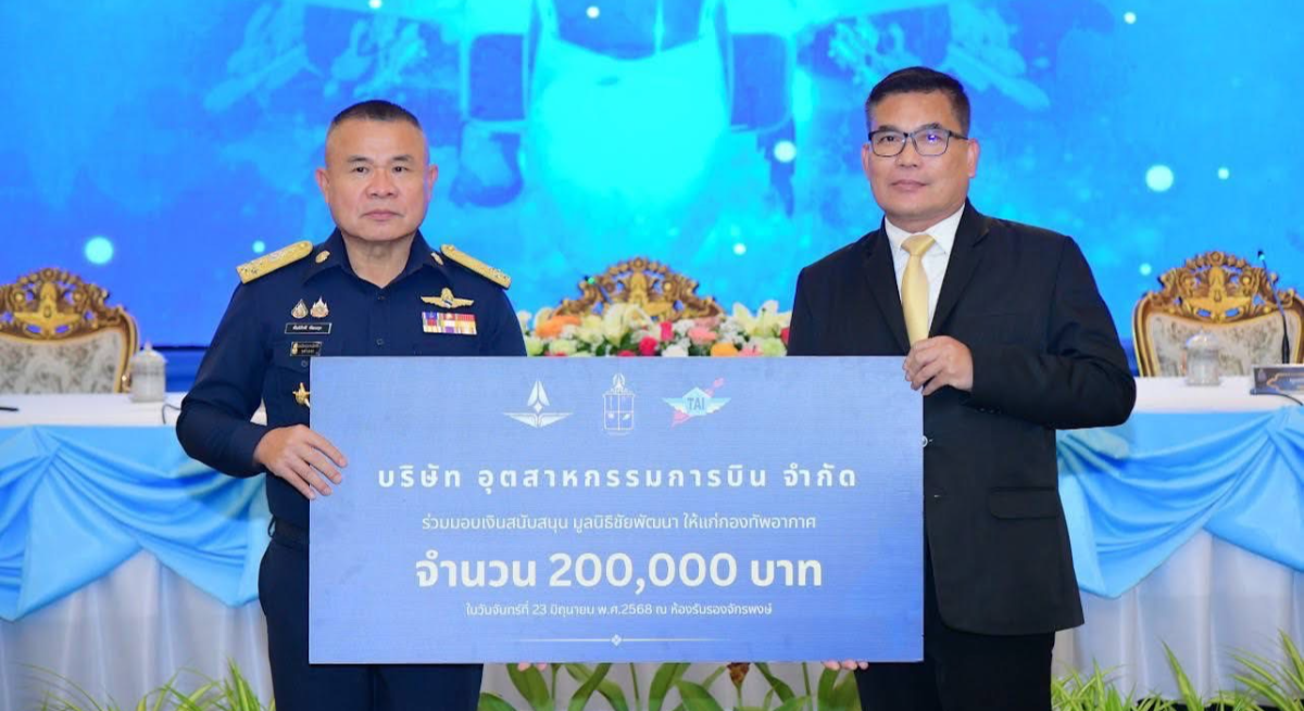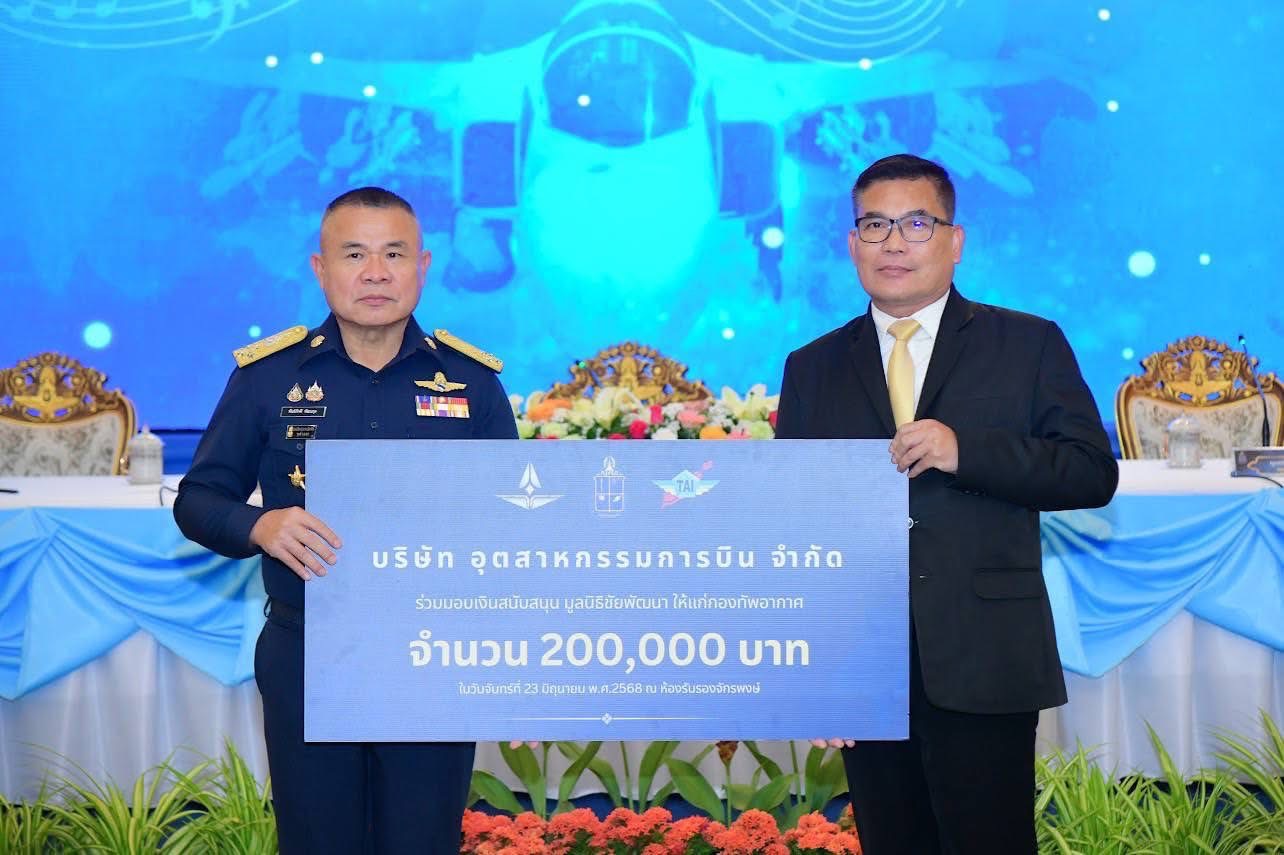 นาวาอากาศโท สุรศักดิ์ ภู่ทอง ผู้ช่วยกรรมการผู้จัดการ เป็นผู้แทน บริษัท อุตสาหกรรมการบิน จำกัด ร่วมงานแถลงข่าว พร้อมมอบเงินสมทบทุนมูลนิธิชัยพัฒนา จำนวน 200,000 บาท และรับมอบของที่ระลึก จาก พลอากาศเอก พันธ์ภักดี พัฒนกุล ผู้บัญชาการทหารอากาศ ประธานในงานแถลงข่าวคอนเสิร์ตทัพฟ้าคู่ไทยเพื่อ “ชัยพัฒนา” ครั้งที่ 16 โดยมี พลอากาศเอก วิธูร ขำเจริญ ประธานคณะที่ปรึกษากองทัพอากาศ ในฐานะประธานกรรมการอำนวยการจัดคอนเสิร์ตฯ คุณจิ๋ว ปิยนุช เสือจงพรู, คุณแต๋ง ภูษิต ไล้ทอง และ คุณแหม่ม พัชริดา วัฒนาร่วมแถลงข่าว