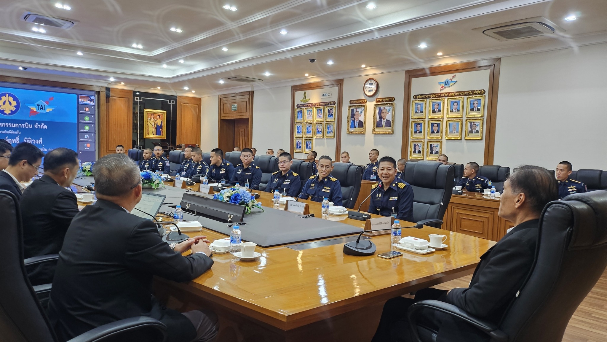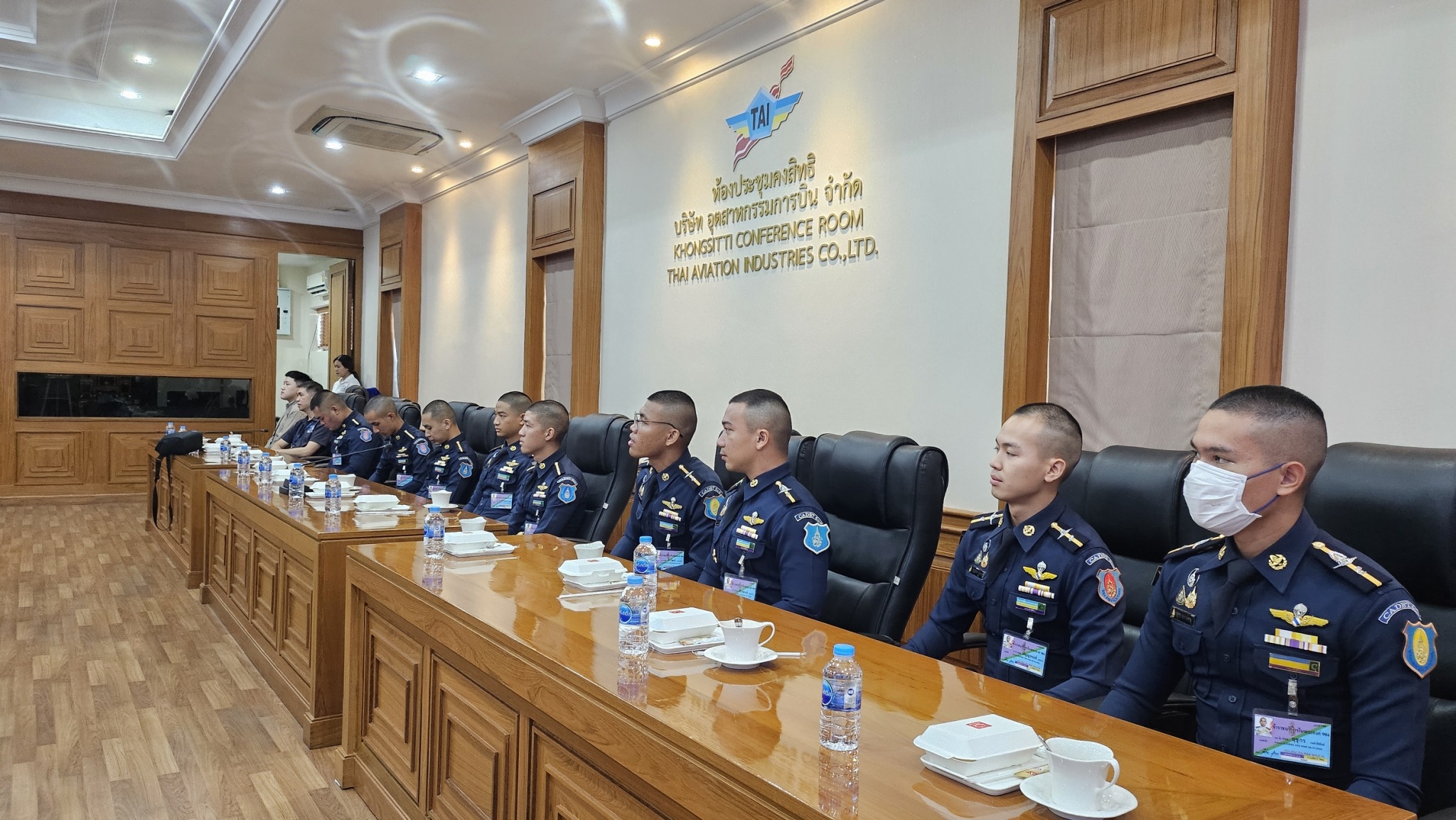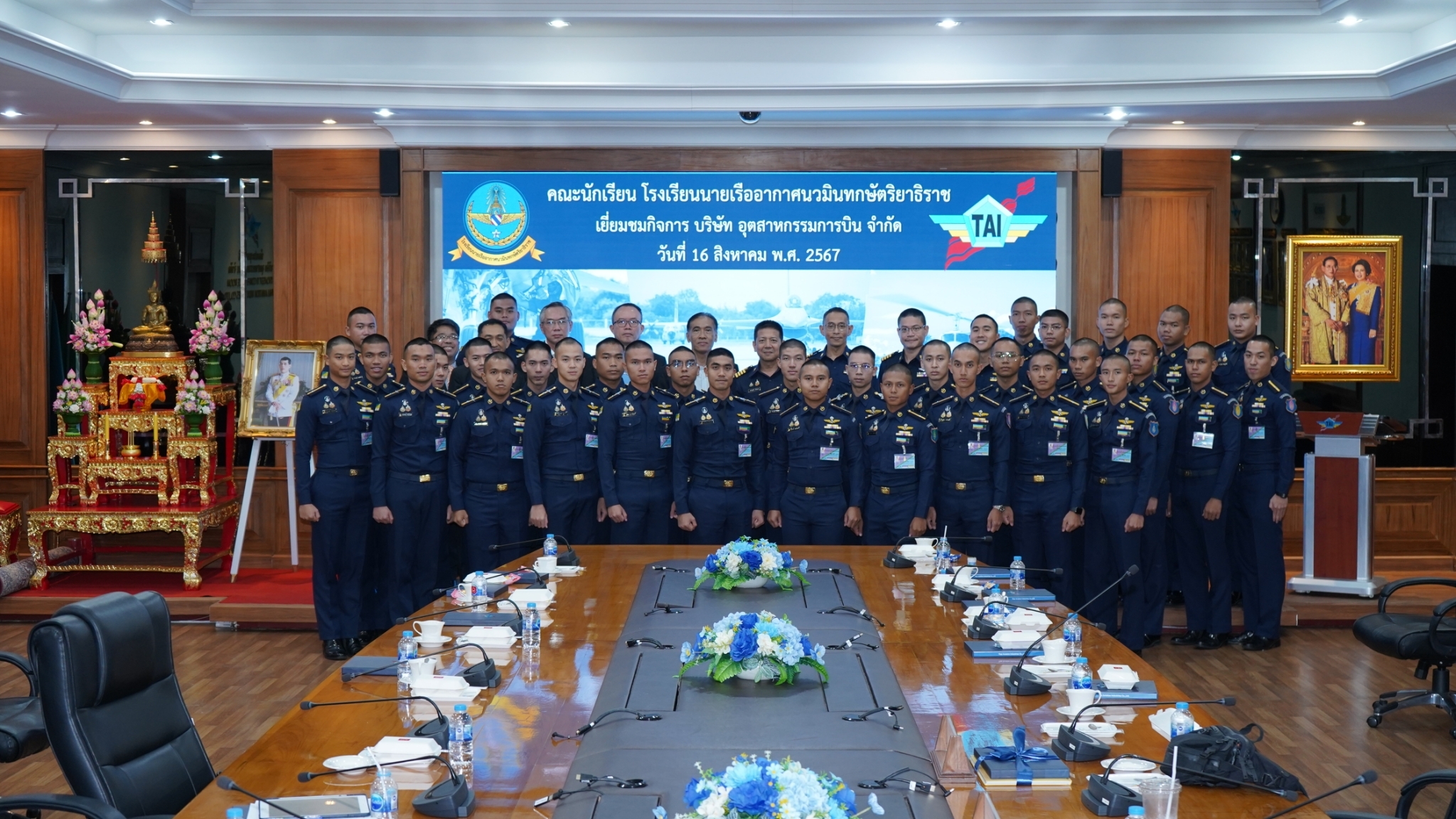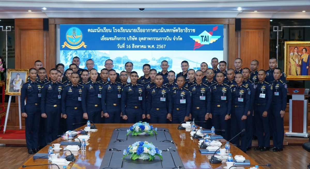 TAI ให้การต้อนรับคณะอาจารย์และนักเรียน โรงเรียนนายเรืออากาศนวมินทกษัตริยาธิราช นาวาอากาศเอกวิถีชัย แสงโทโพธิ์ ผู้ช่วยกรรมการผู้จัดการ บริษัท อุตสาหกรรมการบิน จำกัด ให้การต้อนรับนาวาอากาศเอก รองศาสตราจารย์ พงษ์ฤทธิ์ นิติวงศ์ ผู้อำนวยการกองวิชาวิศวกรรมอากาศยาน และเทคโนโลยีการบิน โรงเรียนนายเรืออากาศนวมินทกษัตริยาธิราช และ คณะนักเรียน โรงเรียนนายเรืออากาศนวมินทกษัตริยาธิราช ชั้นปีที่ 4-5 ในโอกาสที่มาเยี่ยมชมกิจการ รับฟังบรรยายสรุปความเกี่ยวเนื่องของบริษัทฯ ในอุตสาหกรรมป้องกันประเทศ และแนวทางการพัฒนาในอนาคต เมื่อวันศุกร์ ที่ 16 สิงหาคม พ.ศ. 2567 ณ สำนักงานใหญ่ ที่ตั้งดอนเมือง กรุงเทพมหานคร