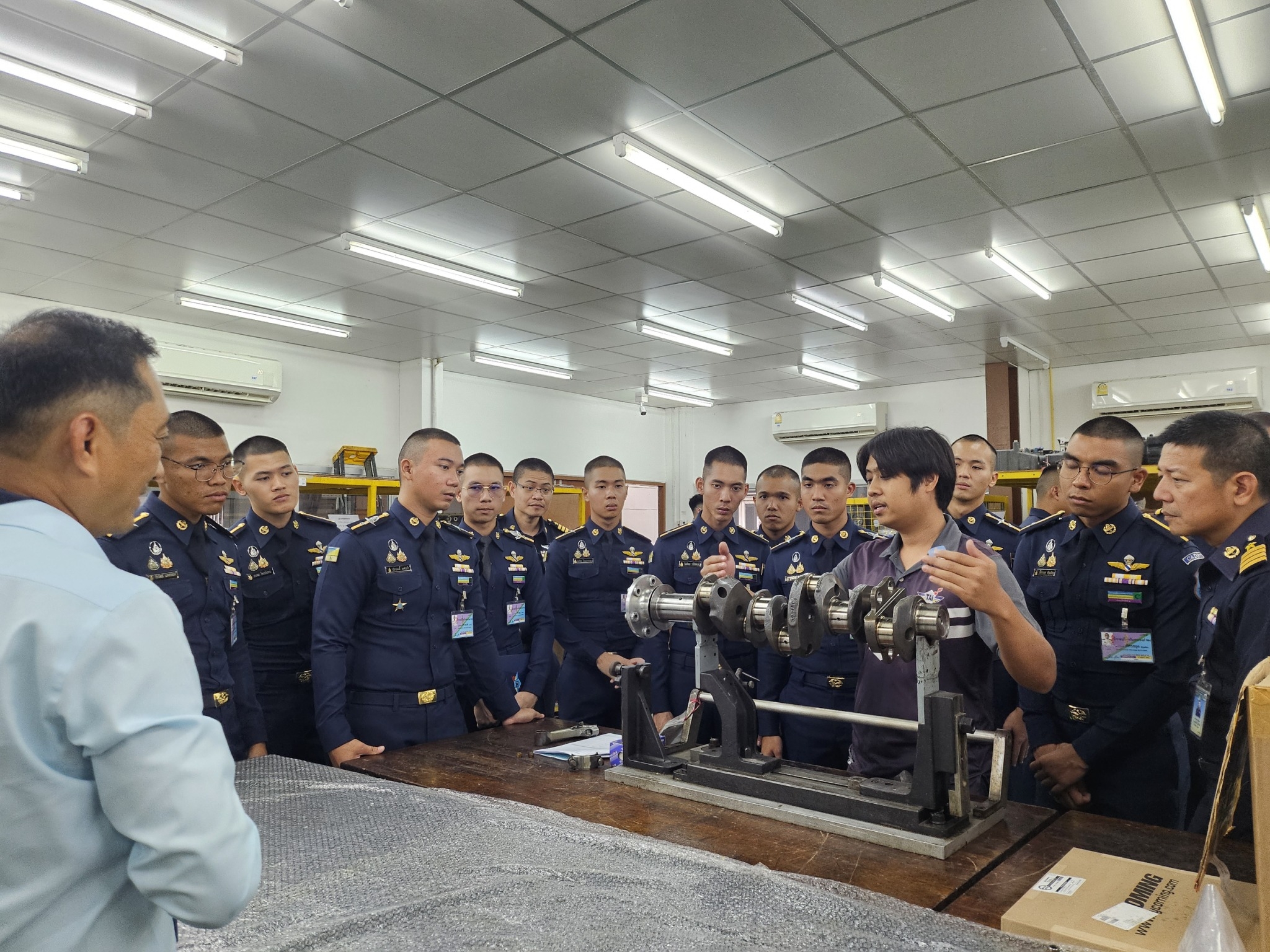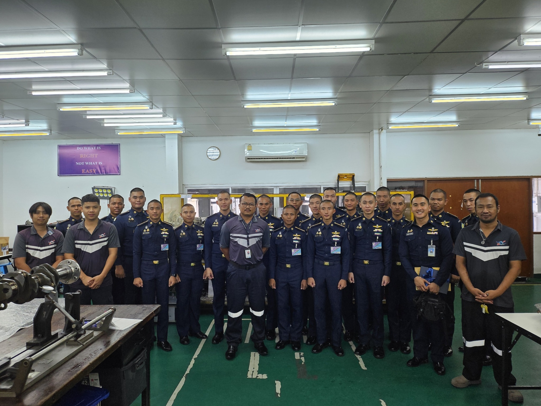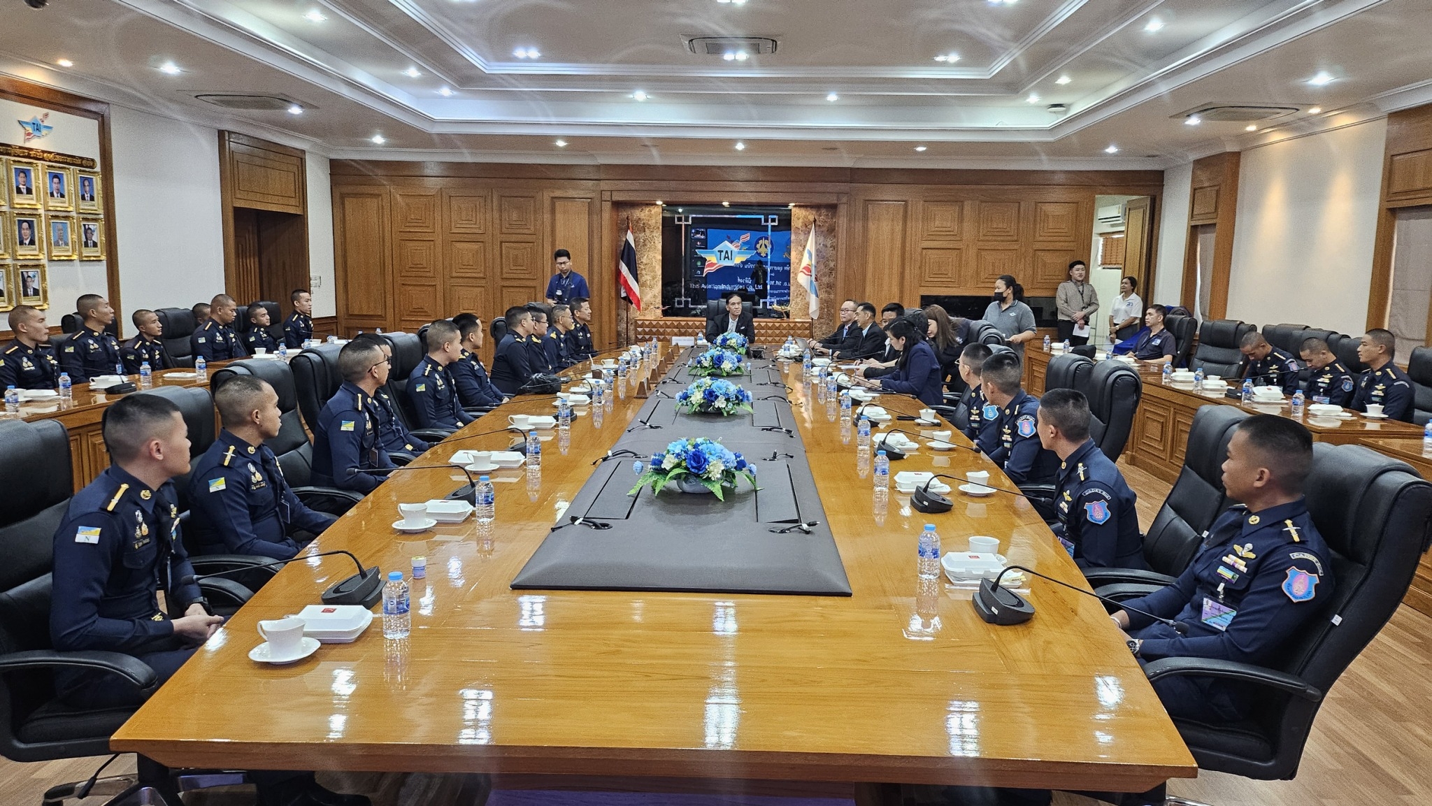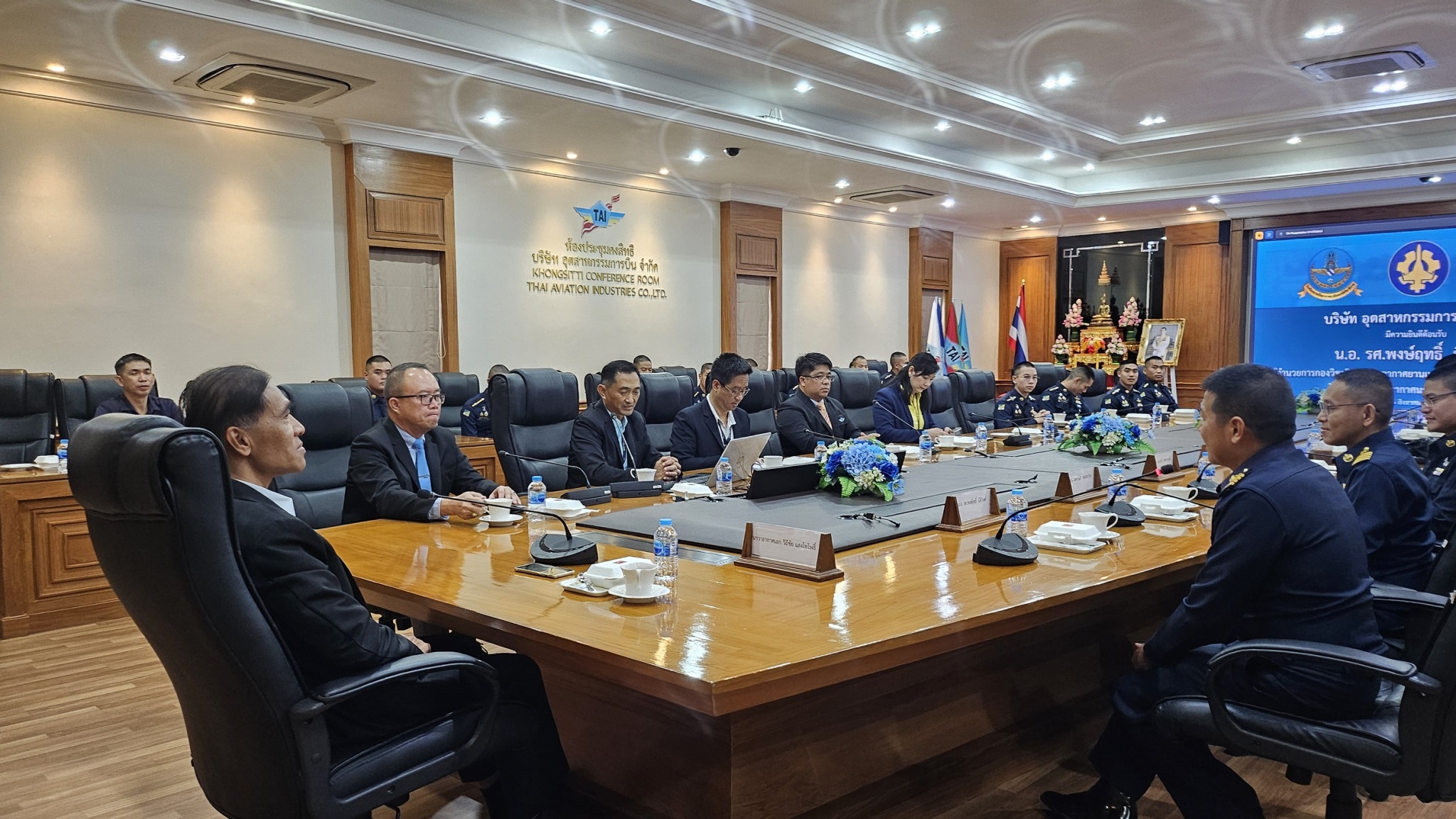 TAI ให้การต้อนรับคณะอาจารย์และนักเรียน โรงเรียนนายเรืออากาศนวมินทกษัตริยาธิราช นาวาอากาศเอกวิถีชัย แสงโทโพธิ์ ผู้ช่วยกรรมการผู้จัดการ บริษัท อุตสาหกรรมการบิน จำกัด ให้การต้อนรับนาวาอากาศเอก รองศาสตราจารย์ พงษ์ฤทธิ์ นิติวงศ์ ผู้อำนวยการกองวิชาวิศวกรรมอากาศยาน และเทคโนโลยีการบิน โรงเรียนนายเรืออากาศนวมินทกษัตริยาธิราช และ คณะนักเรียน โรงเรียนนายเรืออากาศนวมินทกษัตริยาธิราช ชั้นปีที่ 4-5 ในโอกาสที่มาเยี่ยมชมกิจการ รับฟังบรรยายสรุปความเกี่ยวเนื่องของบริษัทฯ ในอุตสาหกรรมป้องกันประเทศ และแนวทางการพัฒนาในอนาคต เมื่อวันศุกร์ ที่ 16 สิงหาคม พ.ศ. 2567 ณ สำนักงานใหญ่ ที่ตั้งดอนเมือง กรุงเทพมหานคร
