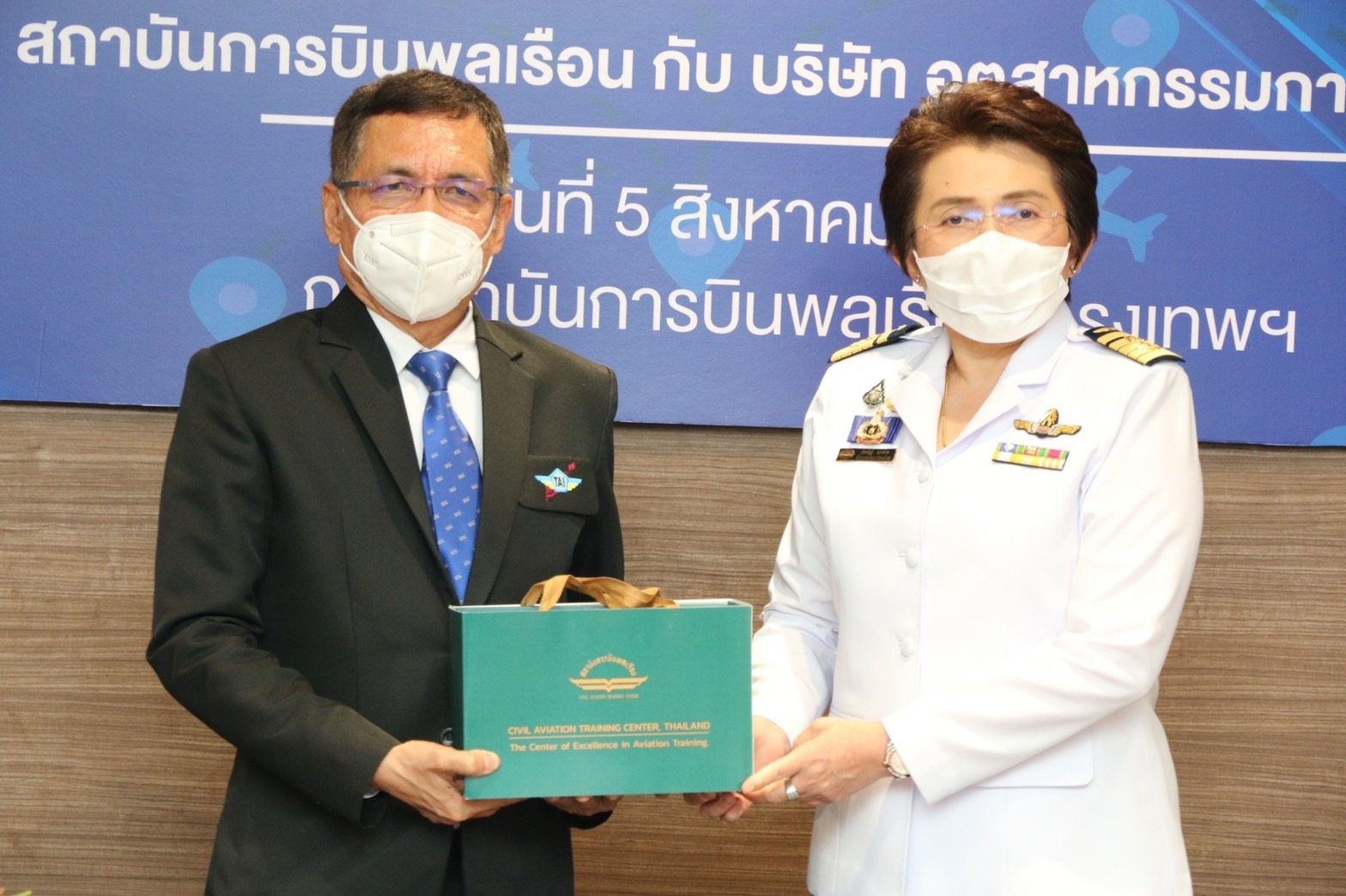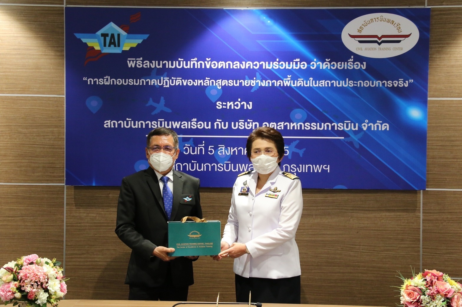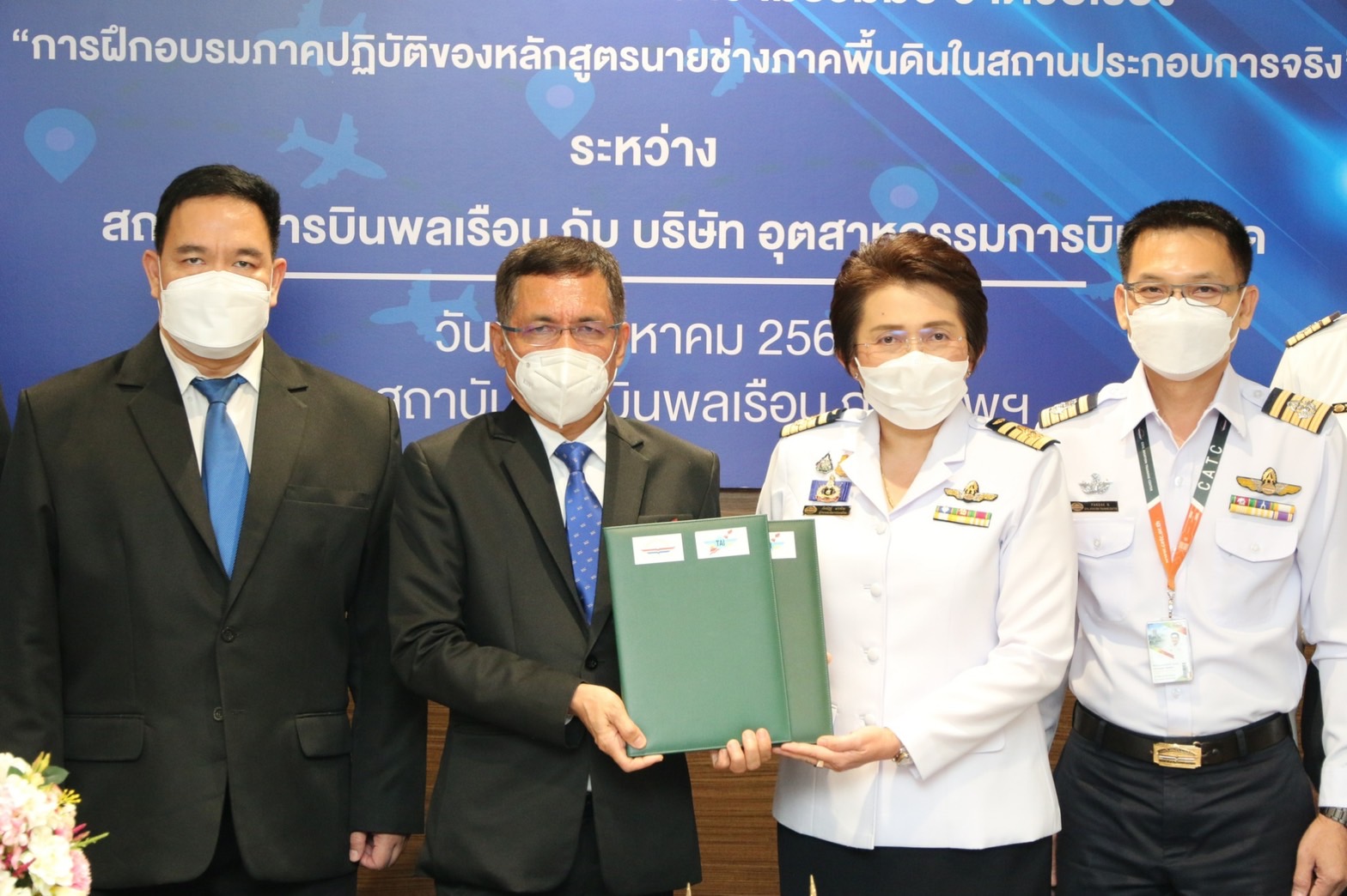 พลอากาศเอกศุภชัย สายเงิน กรรมการผู้จัดการ บริษัท อุตสาหกรรมการบิน จำกัด ร่วมพิธีลงนามบันทึกข้อตกลงความร่วมมือว่าด้วยเรื่อง “การฝึกอบรมภาคปฏิบัติของหลักสูตรนายช่างภาคพื้นดิน ในสถานประกอบการจริง” กับสถาบันการบินพลเรือน (สบพ.) รัฐวิสาหกิจสังกัดกระทรวงคมนาคม โดยมี นางสาวภัคณัฏฐ์ มากช่วย ผู้ว่าการสถาบันการบินพลเรือน เป็นผู้ร่วมลงนาม พร้อมด้วยผู้บริหารจากทั้ง 2 หน่วยงานร่วมเป็นเกียรติในการลงนามดังกล่าว เมื่อวันที่ 5 สิงหาคม 2565 ณ สบพ. กรุงเทพฯ